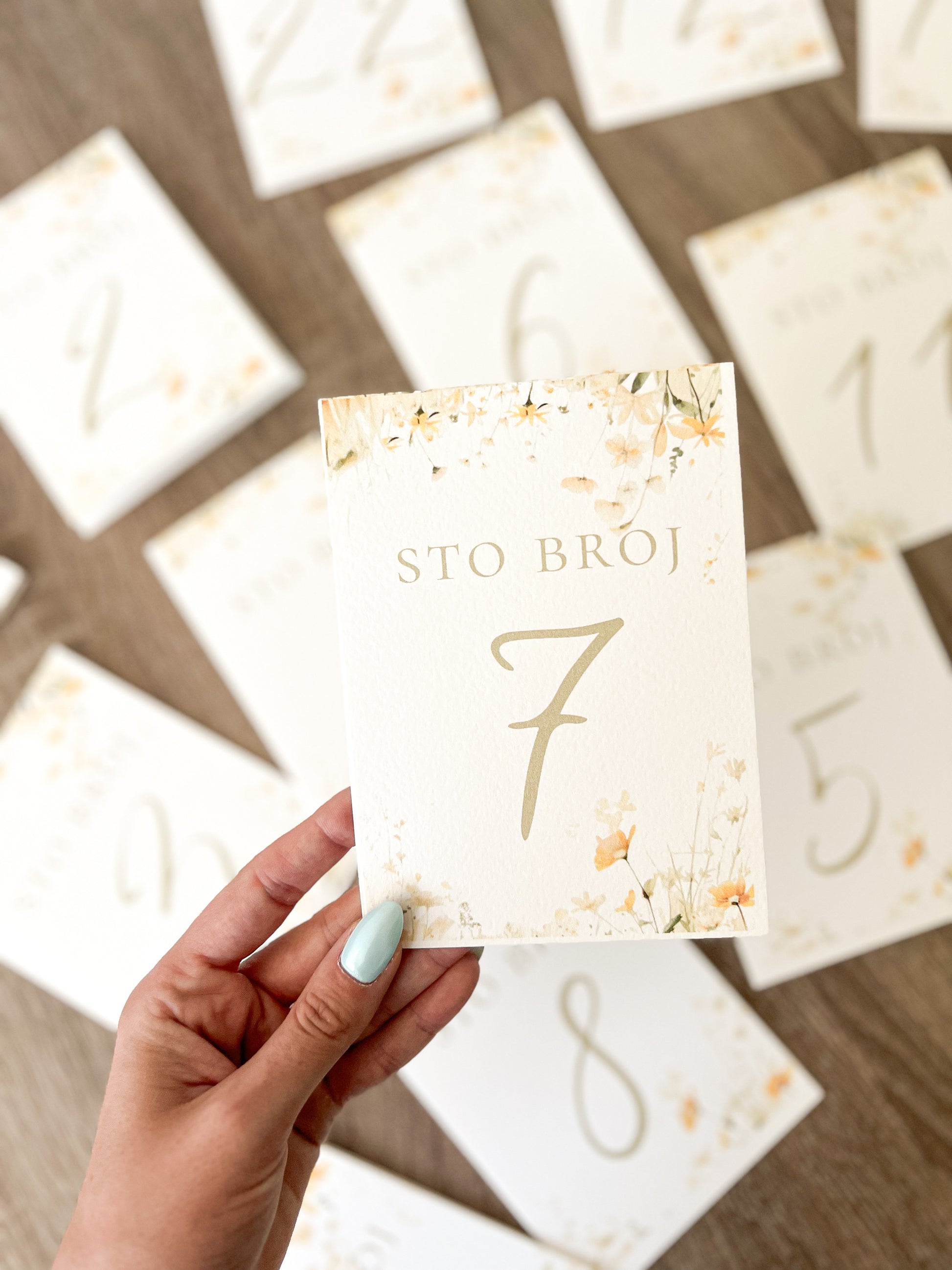 Broj za sto izrađen je na kvalitetnom, čvrstom papiru i služi kao elegantan detalj dekoracije na proslavama. Jasno označava raspored sedenja i vizuelno upotpunjuje svaki sto.