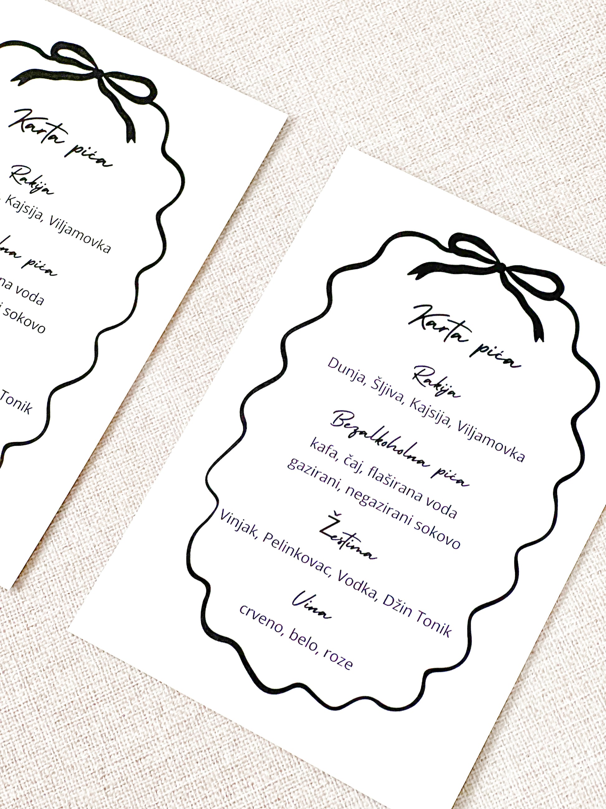 Karta pića je praktičan i elegantan način da gosti imaju jasan uvid u ponudu tokom vaše proslave.