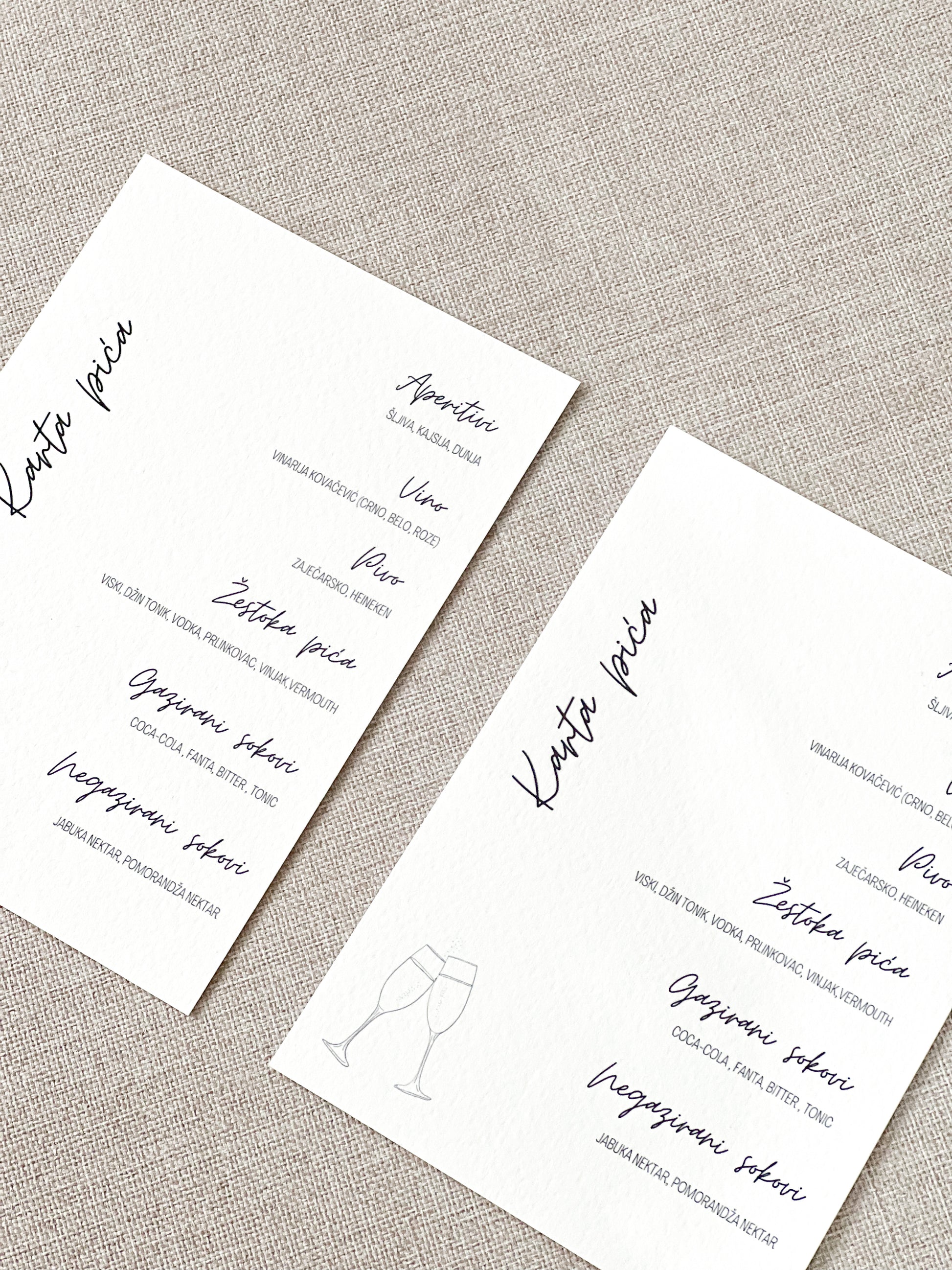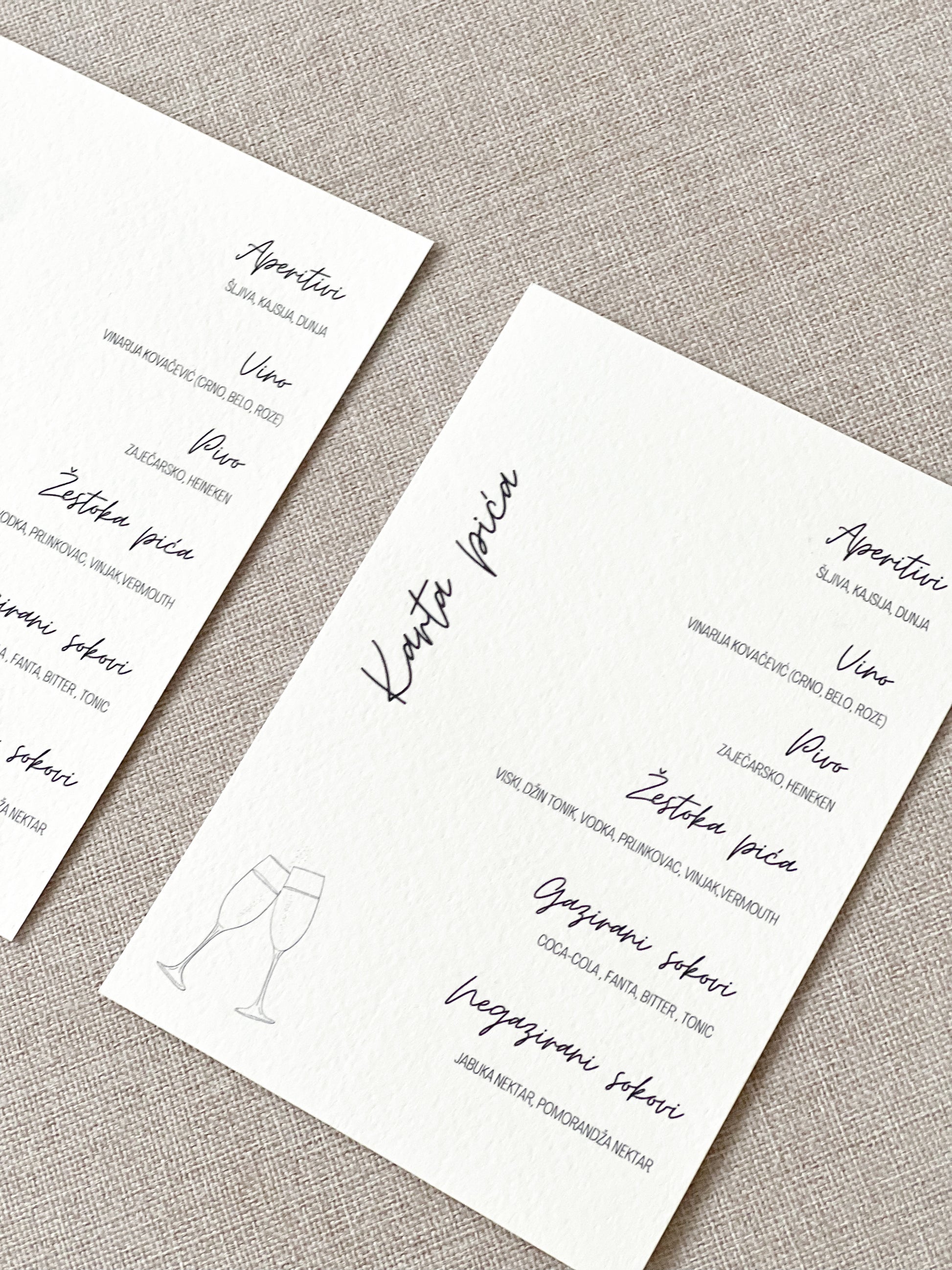 Karta pića je praktičan i elegantan način da gosti imaju jasan uvid u ponudu tokom vaše proslave.
