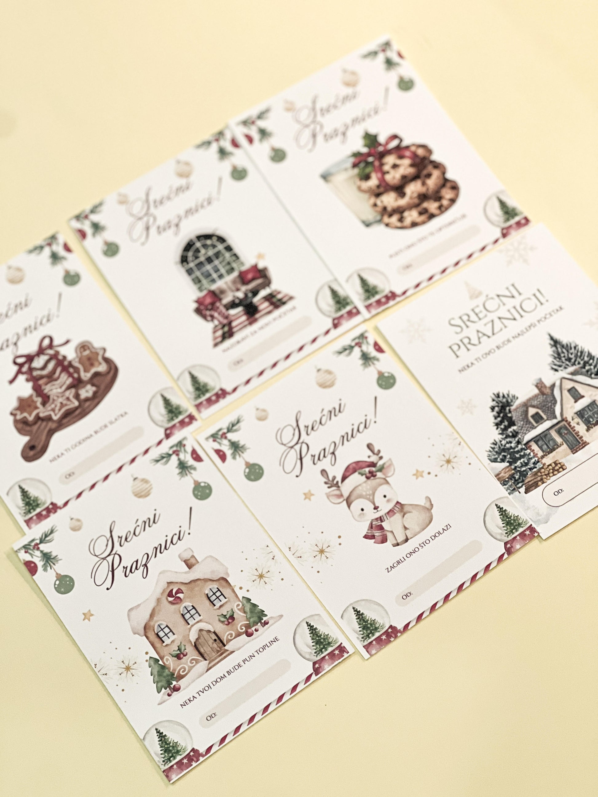 Novogodišnji set čestitki sa prelepim akvarel ilustracijama koje svaki poklon čine posebnim. U pakovanju se nalazi 6 komada.